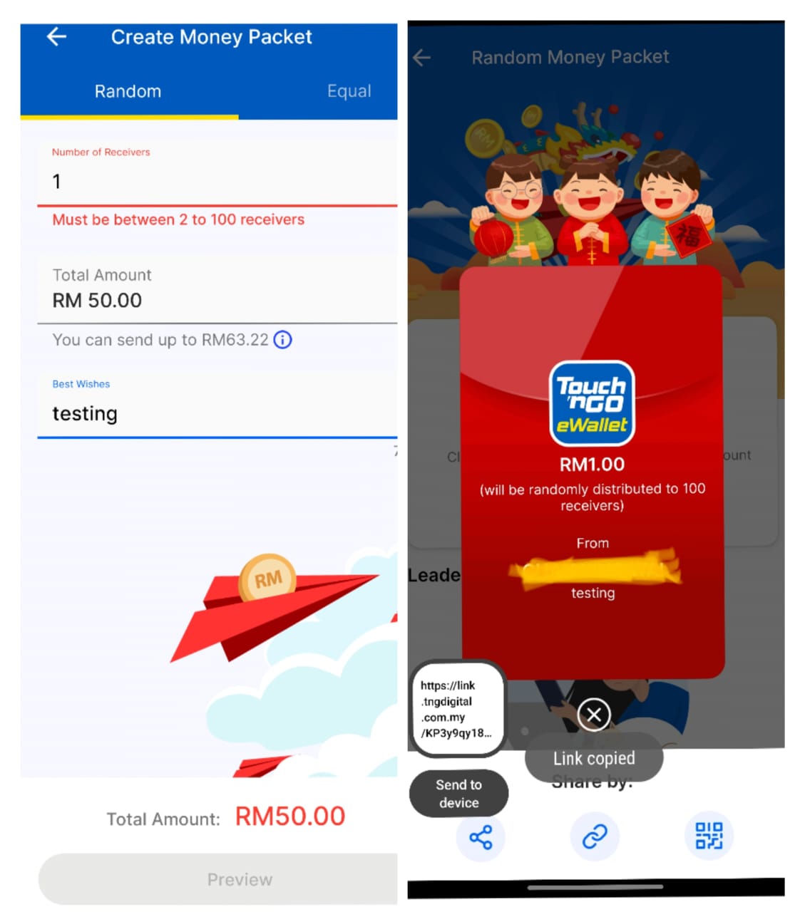 * Currently, only support Touch 'n Go link. Ex :https://link.tngdigital.com.my/EseQi61wnr54aTd